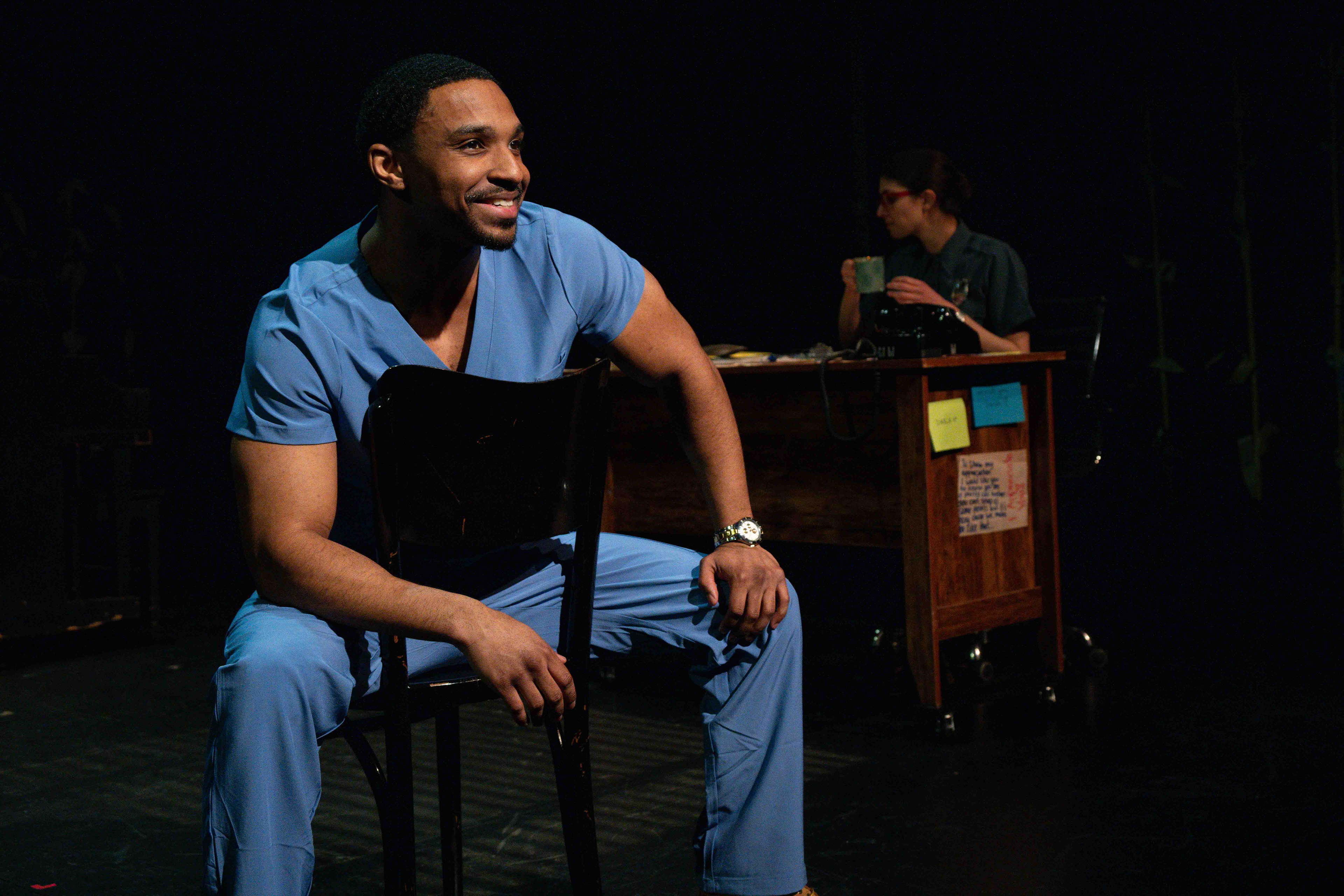 Venue: Atlantic Stage 2 Directed by: Irvin Mason Jr. Production Stage Manager: Rebecca Batson Photographer: Ahron R. Foster Lighting Design by: Nolan Belcher Scenic Design by: Emmy Boisvert Costume Design by: Izzy Kitch Sound Design by: Chris Darbassie Prop Design by: Natalie Battistone