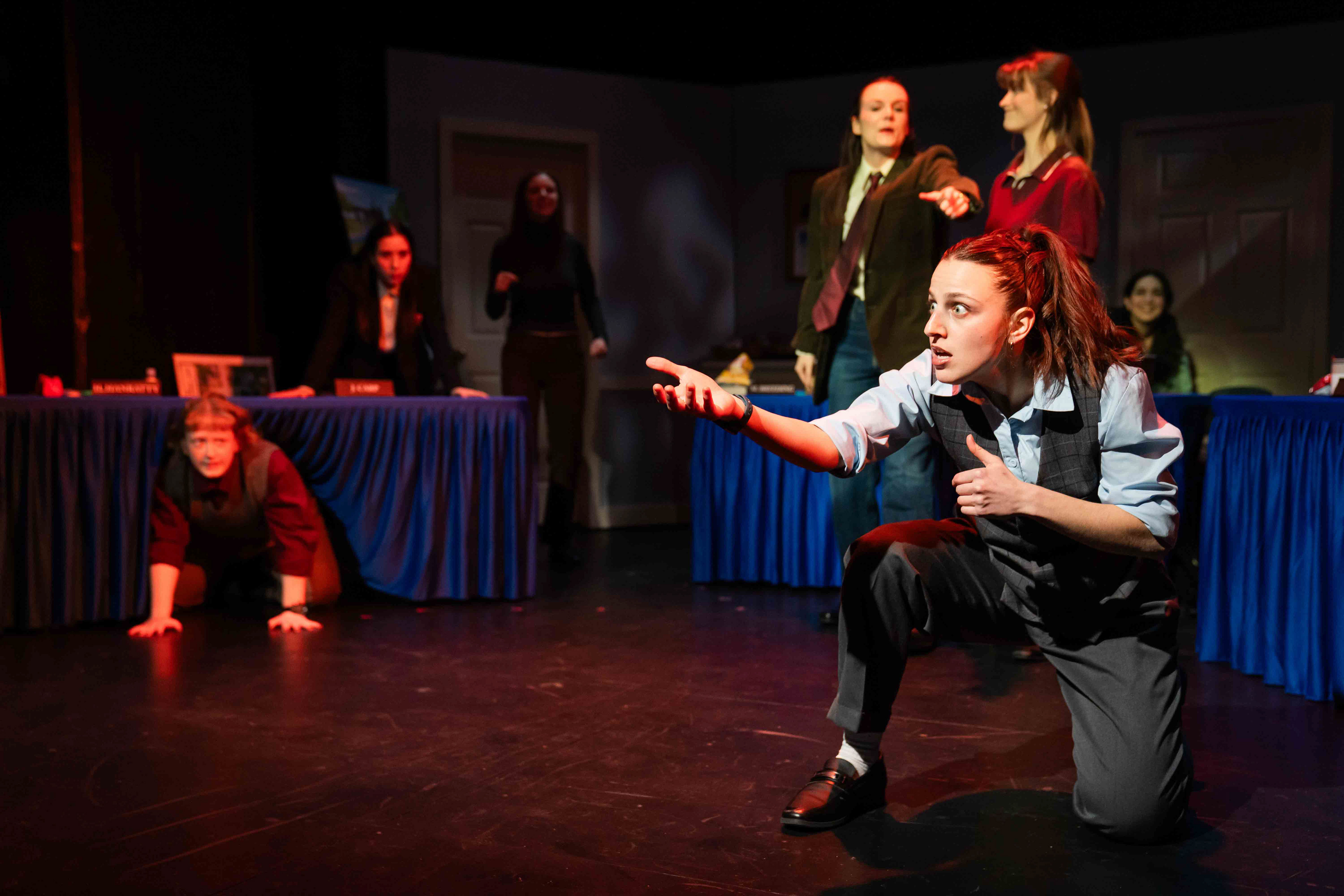 Venue: Atlantic Stage 2 Directed by: Acadia Barrengos Production Stage Manager: Madison Figueroa-Diaz Photographer: Arden Dickson Lighting Design by: Nolan Belcher Scenic Design by: Emmy Boisvert Costume Design by: Barbara Erin Delo Sound Design by: Chris Darbassie Prop Design by: Natalie Battistone